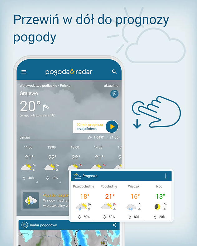 Pogoda & Radar są również dostępne na