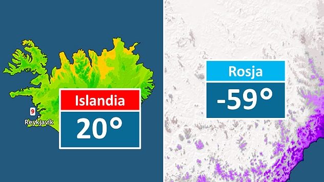 20 stopni na Islandii, minus 59 stopni na Syberii