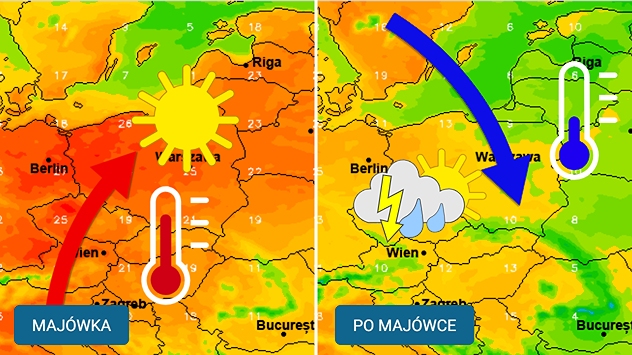 Majówka zapowiada się przepięknie, będzie słonecznie i gorąco. W piątek nieco więcej chmur na południu i wschodzie, a w niedzielę na Pomorzu może przelotnie popadać. Poza tam bezchmurnie. W piątek od 16°C na wschodzie do 23°C na zachodzie, z kolei w sobotę i niedzielę od 20-22°C na wschodzie do 26-28°C na zachodzie. Aura wymarzona na wypoczynek na świeżym powietrzu.