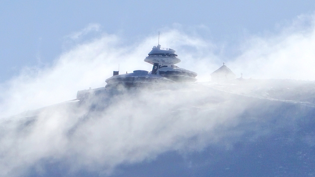 Na Śnieżce spadła cienka warstwa białego puchu o grubości 4 centymetrów. Jednak wcześniej niski pułap chmur sprawił, że na wychłodzonych powierzchniach osadziła się szadź.