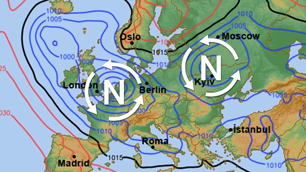 Będzie spadać do piątku i soboty, kiedy znajdziemy się między dwoma niżami. Barometry pokażą wtedy około 1005 hPa. Ciśnienie będzie więc obniżone, ale na szczęście nie bardzo niskie.