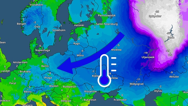 Na Radarze Temperatury widoczny jest strumień mroźnego powietrza w Wigilię.