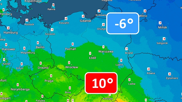 Na południu ciepło, na północy mroźnie