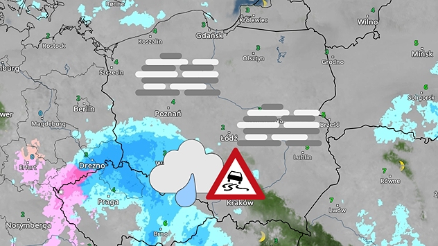 Jednocześnie w drugiej połowie nocy nad południowe i południowo-zachodnie regiony dotrze strefa opadów deszczu lub mżawki, które mogą przejściowo marznąć.