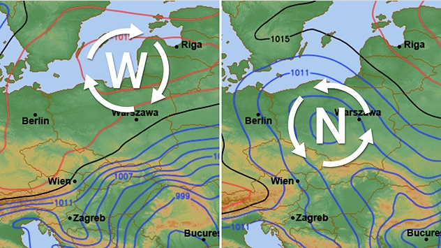 Następne dwa dni miną pod znakiem kolejnego dużego spadku ciśnienia poniżej 1000 hPa, a w środę i czwartek szybkiego wzrostu powyżej 1020 hPa.